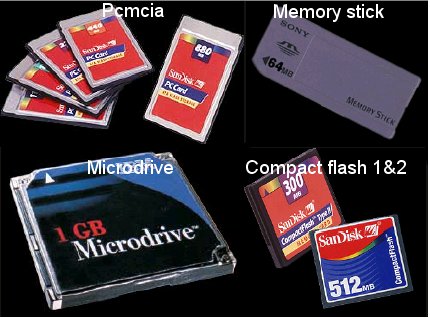 Positives: Widely supported by digital cameras. Reusable. Small and very rugged. Large capacity up to 512MB (type I) and 300MB Type II. Type I: average of $3 US per MB. Type II: average of $ 2.50 US per MB.