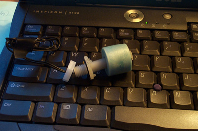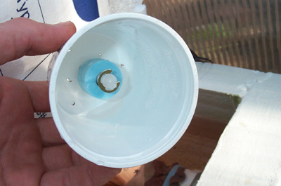 Notice the top unscrews to allow the switch to be mounted as I have shown in the second picture. You will need to find something you can attach the switch to which will put the float at roughly the height of the nutrient in your system. (I used a yogurt cup and this was perfect for my 4″ Shallow water system.)
