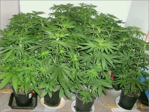 A while back I took an interest in using root pruning chemical products on a trial basis with Cannabis and other plant material. These products use a copper base and are sprayed or painted on the inside of the pot to achieve root-tip dieback inducing profuse secondary root branching. As far as I know, root pruning products have never been evaluated by the horticultural community, amateur or otherwise on Cannabis. Past experience with yard plants and a few Cannabis plants was successful, so, I decided to commit my entire garden to its use and see what might happen.