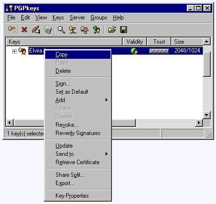 In the PGPkeys window, highlight your key, right click and chose COPY
