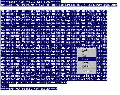 Click and drag the mouse over it all so it highlights the PGP Key (select all). Then right-click and COPY.