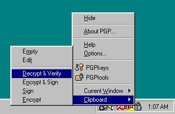 Click the PGP task bar icon and select CLIPBOARD then select ENCRYPT.