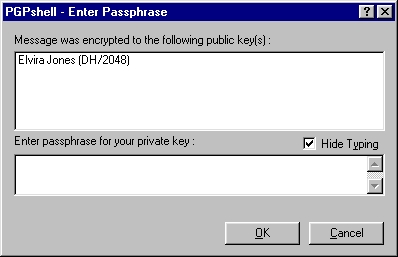 Enter the passphrase for your Public PGP Key then press OK.