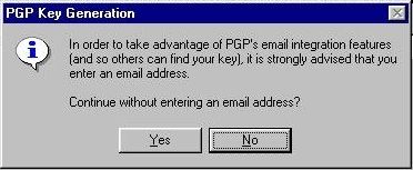 Just click YES and the key will be created without the email.