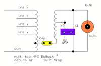 This faq includes illustrated images of the components and wiring of a HPS Ballast within Europe (220v). The last diagram dicpicts the wiring of a multi-tap HPS ballast.