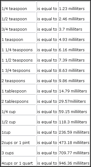 U.S/Metric conversion chart