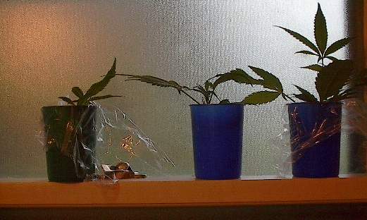 All were in the 320-watt veg area in roughly three weeks from cutting to final transplant.