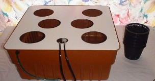 *Orchid pots are heavy duty net pots made by the Orchid pot company, they are better than ordinary net pots because they have a flange molded into the top of the pot, allowing for the net pot to be suspended in a hole without the risk of the combined plant/pot/rocks weight causing it to fall thru the hole. Orchid pots are available from grow stores and they usually sell for about $1.50 each (10 for $15.00), good cheap and easy to use.