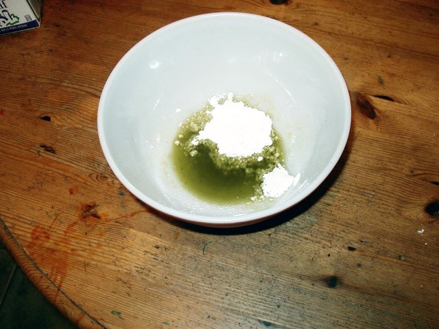 Melt butter and combine with confectionary sugar until the sugar is melted.