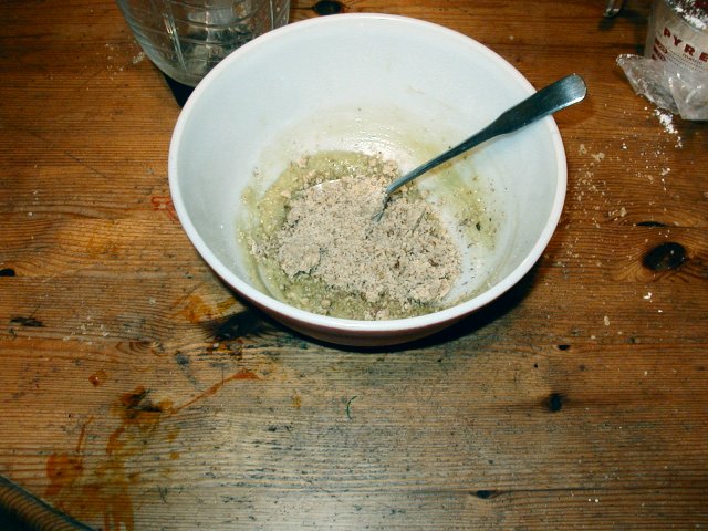 Add coarsly ground nut meats (i put them in my blender for several seconds).
