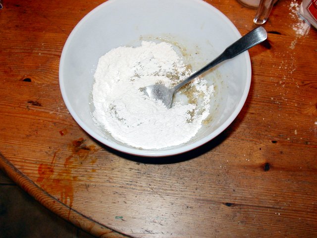 Form one-inch ball and flatten into cookie, place on an ungreased cookie sheet.