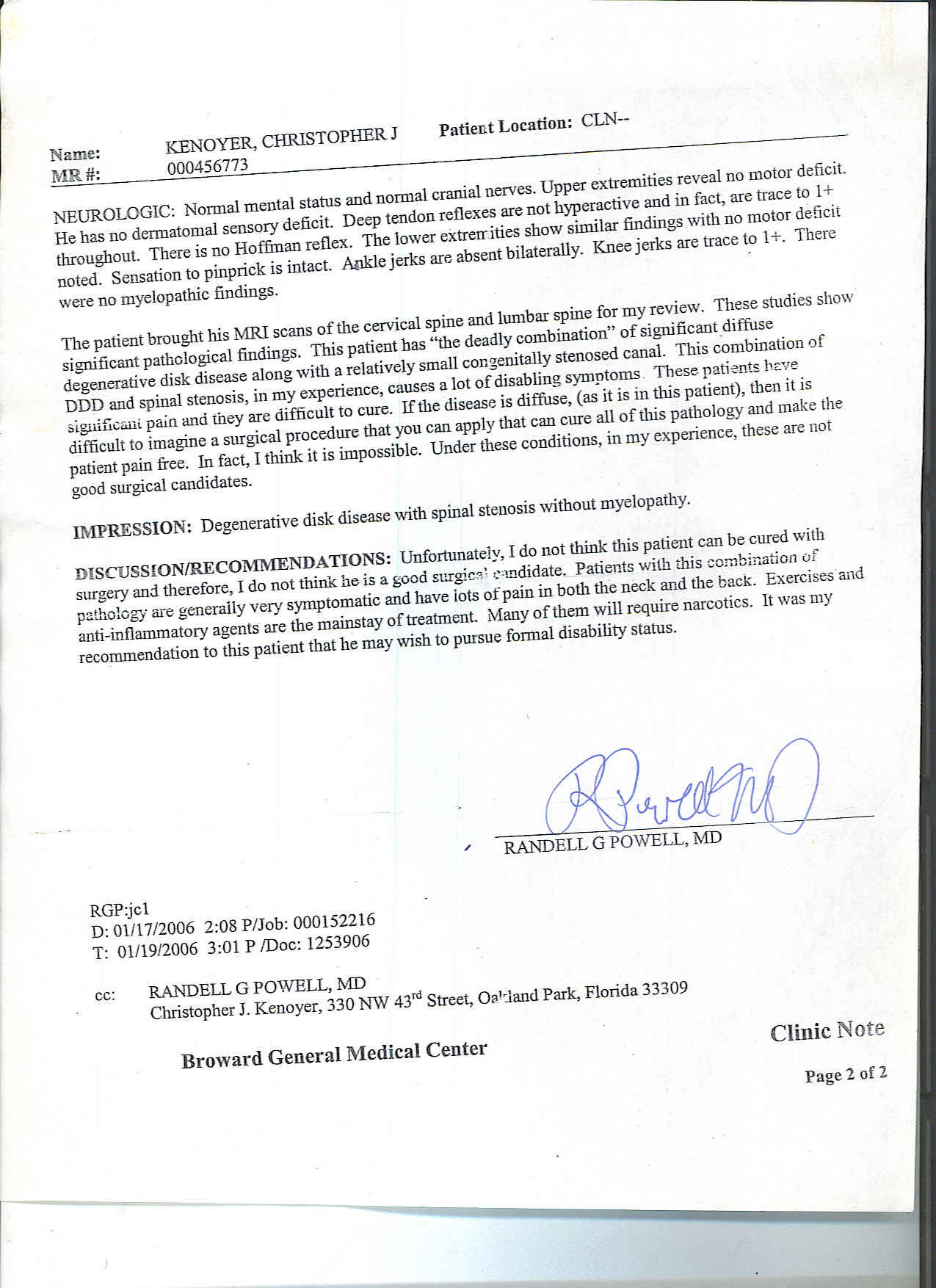 pulmonary disease (COPD), and the doctors have performed two FAILED spinal surgeries.